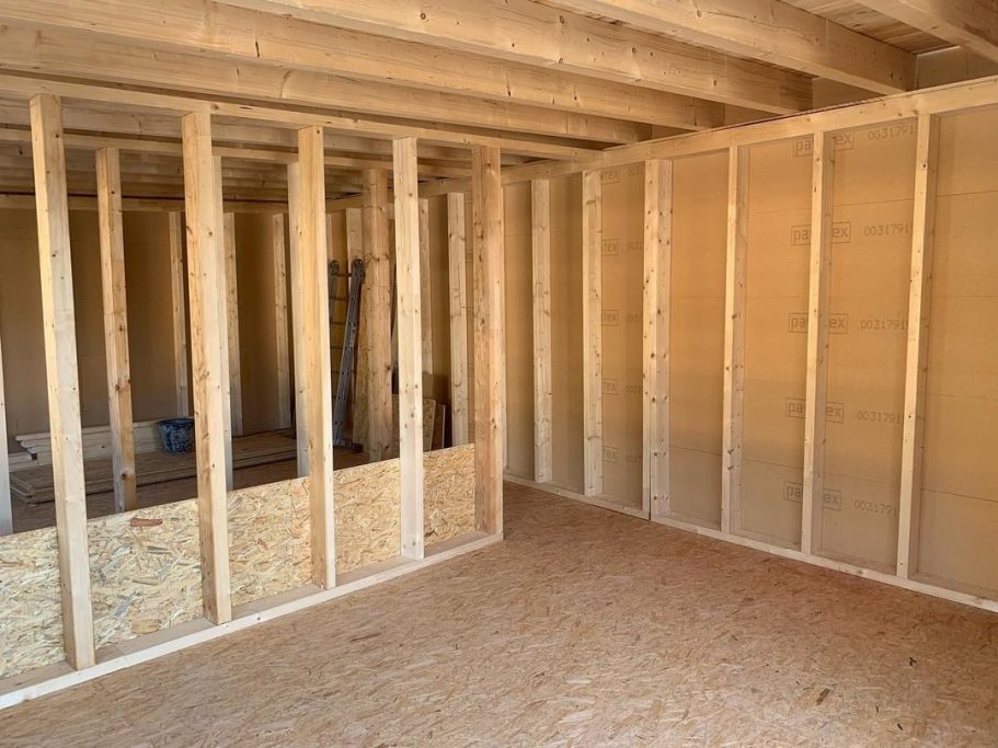 Dank vorgefertigter Holzelemente können wir Ihr Haus schnell, präzise und effizient erweitern.